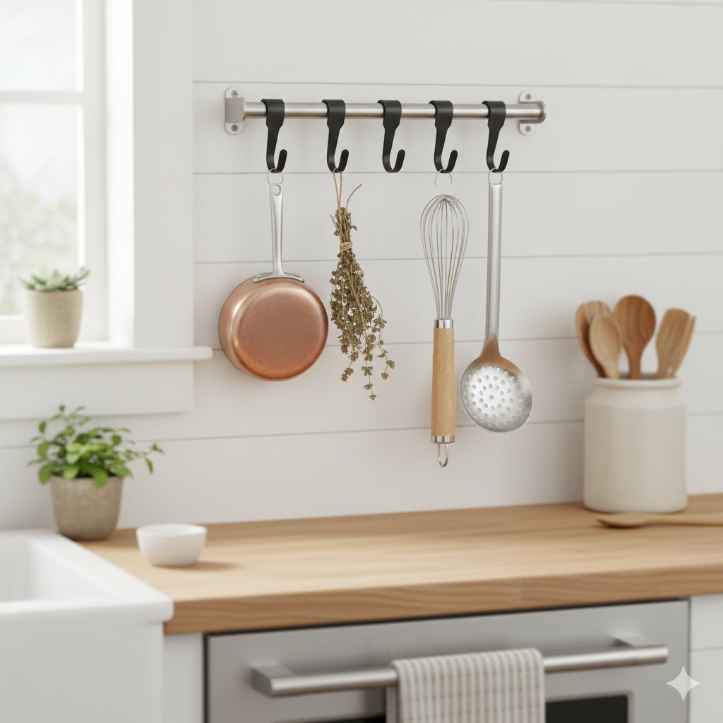 یکی از محصولات ایکیا که کاربرد گسترده ای در آشپزخانه شما خواهد داشت. از قلاب مشکی ایکیا IKEA-HULTARP میتوانید برای آویزان کردن انواع وسایل از قاشق ها گرفته تا تابه ها استفاده کنید. این قلاب ها قابل نصب روی ریل مخصوص KEA-HULTARP هستند. میتوانید به تعداد دلخواه از آن ها تهیه کنید و بر روی دیوار آشپزخانه قرار دهید.