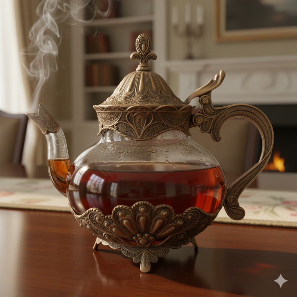 “قوری تک آنتیک خارجی یونیک کد 1339” محصولی است خاص و زیبا. این محصول از شیشه به دلیل ثابت نگه داشتن رنگ و بوی مایعات و آلیاژ پیوتر ساخته شده. این آلیاژ که به نام مسوار هم شناخته می شود ترکیبی است از مس و قلع و رگی بین زرد و مسی دارد. از این رو بسیاری از وسایل خانگی و تزیینی از این آلیاژ ساخته می شود.