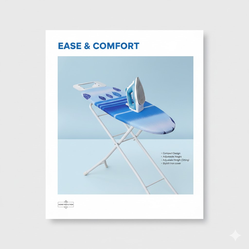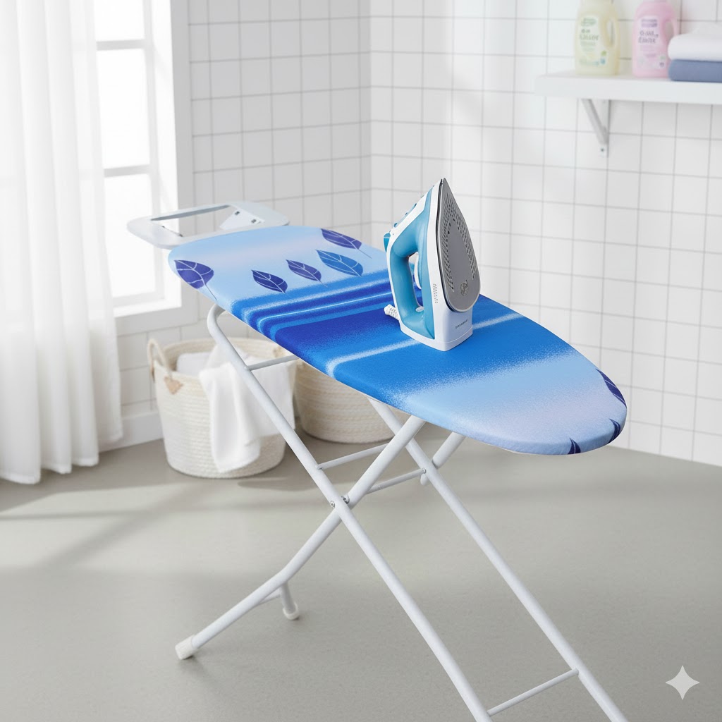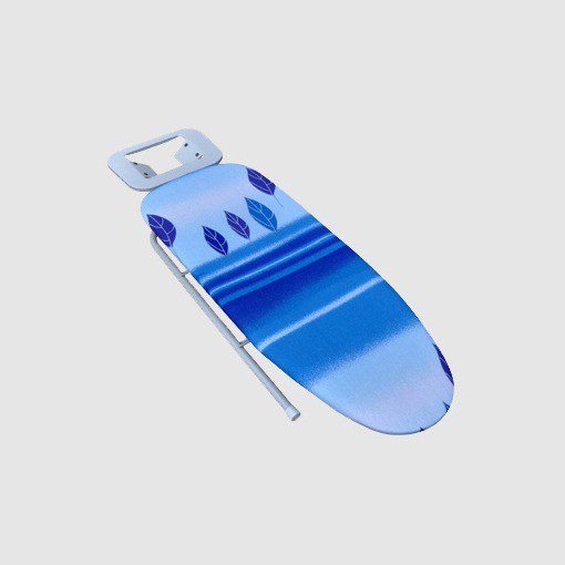صفحه زیرین این میز مشبک ایت و اجازه در شدن بخار را میدههد تا سطح میز خیس نشود. این صفحه با یک اسفنج و روکش پارچه ای پوشیده شده تا اتو زدن را هر چه بیشتر راحت کند. صفحه کناری میز فلزی و برای قرار دادن اتو است.