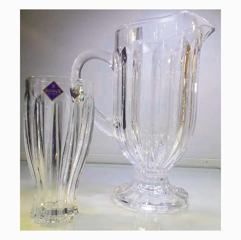 این سری پارچ و لیوان ، از شیشه با درصد سرب کمتر از کریستال های موجود ساخته شده است. پس از گذشت چندین سال از ورود پارچ و لیوان های کریستال با برند های معروف و مطرح دنیا به خاطر قیمت بالای آن ها ، هر کسی توان خرید آن ها را نداشت. زمان اندکی از ورود محصولات چینی با برند های مختلف نمیگذرد که با ورود آن به بازار مورد استقبال همگان قرار گرفت ، این پارچ و لیوان ها برخی مشابه طرح های بورس شرکت های کریستال سازی دنیا می باشند. کیفیت مطلوب ، قیمت مناسب و بسته بندی شیک از جمله ویژگی های این محصول است .
