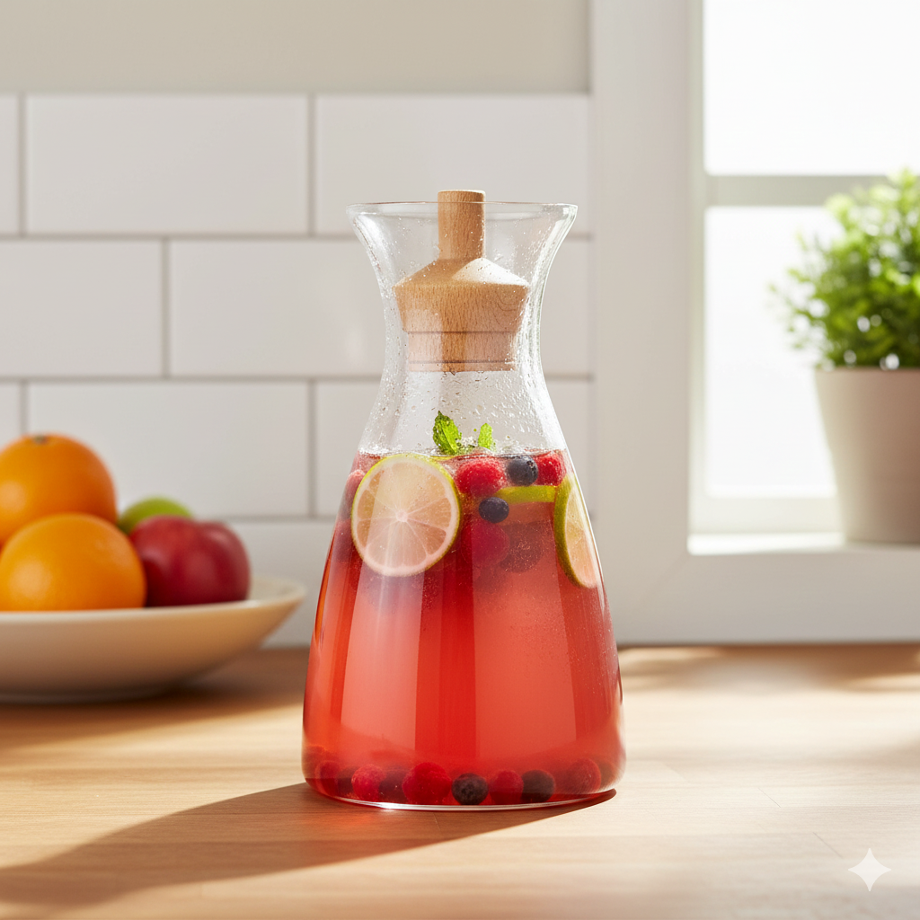- طراحی زیبا: ترکیب شیشه شفاف و درب چوبی باکیفیت، به این بطری ظاهری شیک و کلاسیک بخشیده است.