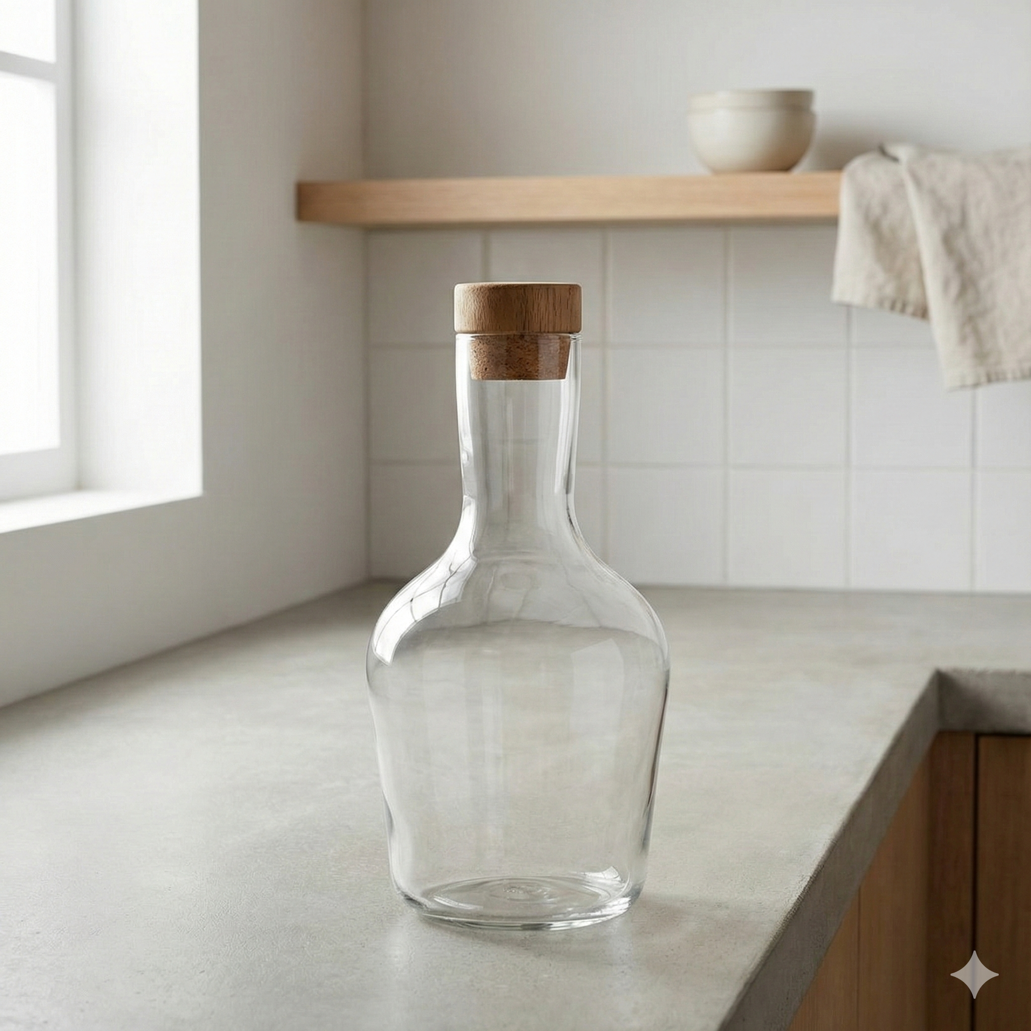 - طراحی زیبا: ترکیب شیشه شفاف و درب چوبی باکیفیت، به این بطری ظاهری شیک و کلاسیک بخشیده است.