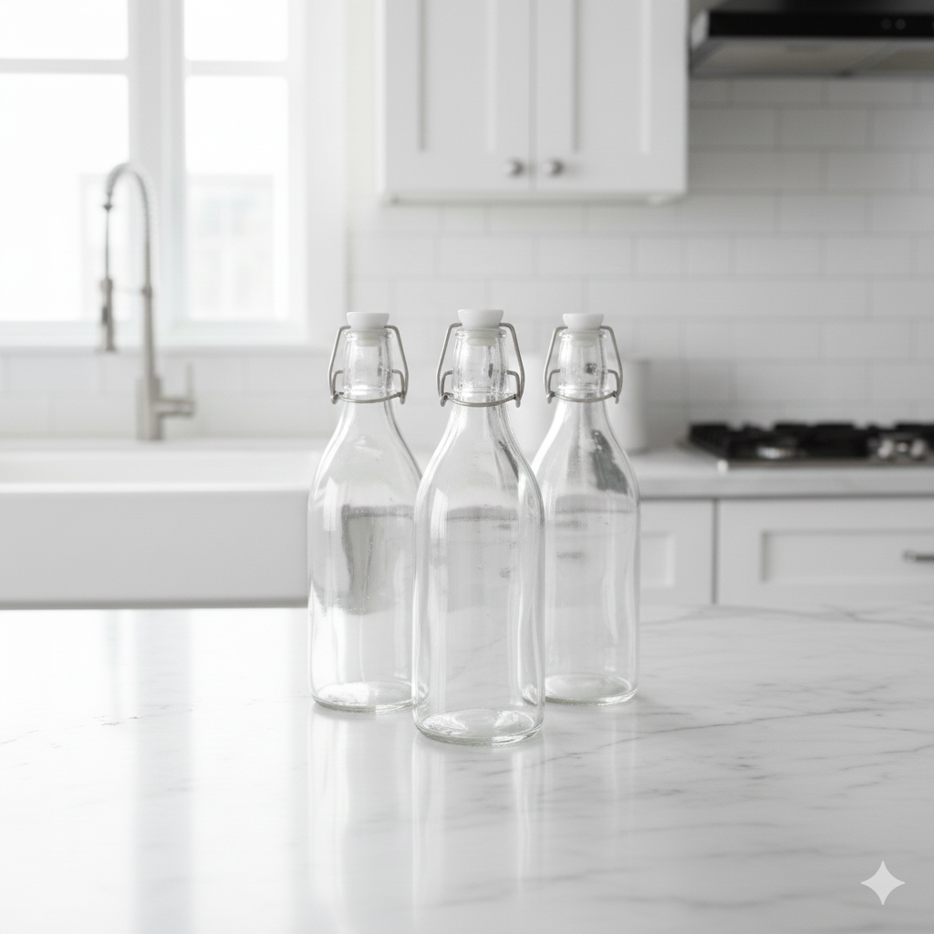 یکی از بهترین انتخاب ها برای نگهداری مواد غذایی ظروف شیشه ای هستند. شیشه ها به راحتی تمیز میشوند و به هیچ وجه با مواد غذایی واکنش نمیدهند. برای همین میتوان از سلامت آن اطمینان داشت. در انتخاب ظروف شیشه ای باید دقت کرد. چون در صورتی که شیشه از کیفیت بالایی برخوردار نباشد. ممکن است در صورت وارد شدن ضربه ای کوچک بشکند و علاوه بر خسارت شیشه مواد غذایی داخل آن هم غیر قابل استفاده شود. ببطری 3عددی کورکن ایکیا IKEA-KORKEN از سری کورکن ایکیا است. بطری آب ایکیا دارای یک درب شیشه ای با سیستم فقل جفت شونده دارند. بنابر این میتوانید اطمینان داشته باشید نوشیدنی هایتان از بطری بیرون نمیریزد. حتی اگر بطری خوابیده یا برعکس شود.