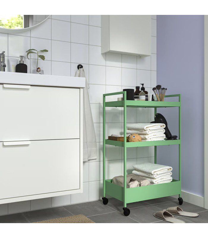 ترولی NISSAFORS از برند مشهور جهانی ایکیا (IKEA)، یک راهحل چندمنظوره و قابل حمل برای نظمدهی و افزایش فضای ذخیرهسازی در خانههای مدرن است. این ترولی به رنگ سبز روشن (Light Green) و با طراحی جمعوجور، نه تنها یک وسیله کاربردی، بلکه یک المان دکوراتیو با طراوت و شاداب به شمار میرود که میتواند به راحتی در کوچکترین گوشههای خانه جای بگیرد.