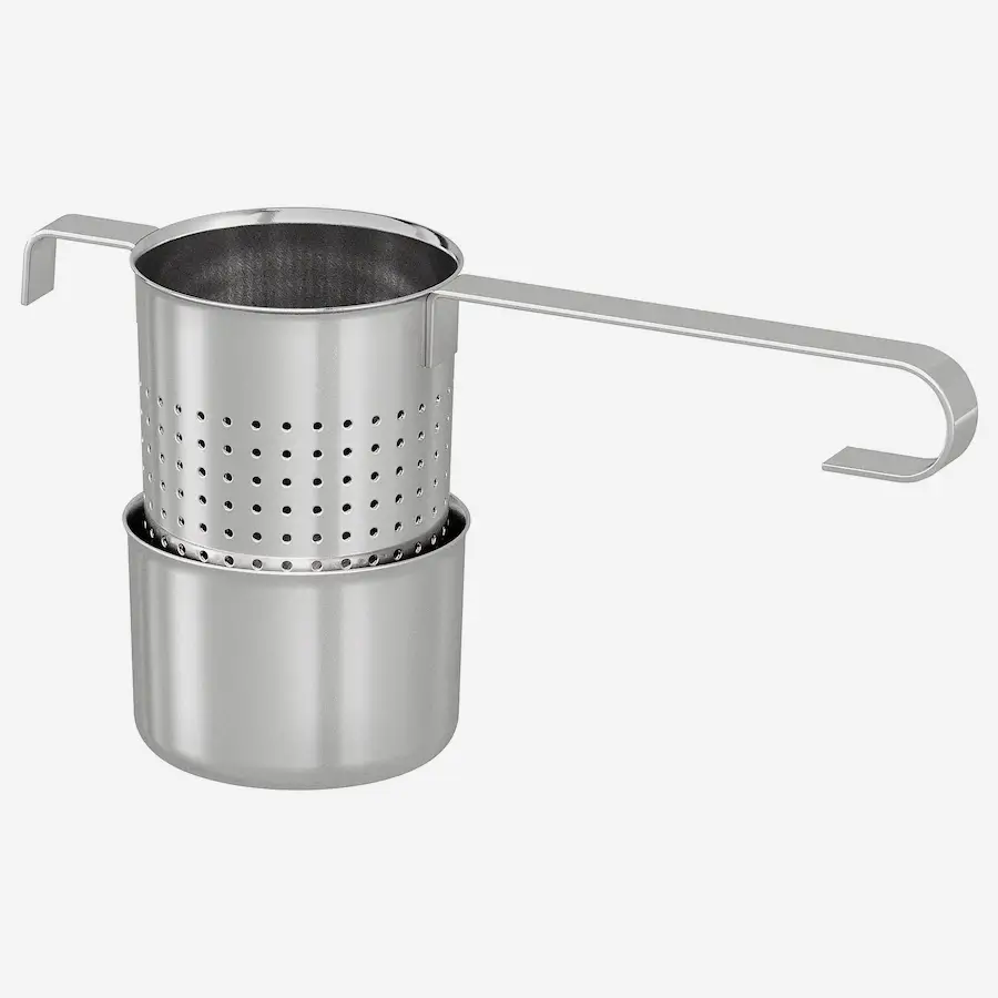 با استفاده از این وسیله هر نوع چای و دمنوش را به راحتی دم کنید. توری چای ایکیا IKEA-LJUDLÖS از استیل ضد زنگ ساخته شده است. این وسیله طوری طراحی شده ک روی لبه ی هر نوع لیوان و ماگ قرار بگیرد. بعد از استفاده میتوانید آن را داخل کاسه نگهدارنده اش قرار دهید تا از لک شدن میز جلوگیری کنید.