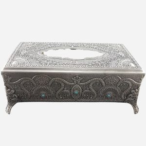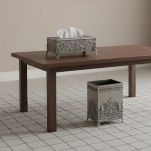 برای کسانی که به زیبایی و دکوراسیون منزل و پذیرایی میهمانان خود اهمیت میدهند و جود یک جا دستمالی زیبا بر روی میز پذیرایی آشکار است. “جای دستمال کاغذی پیوتر یونیک کد 1304” شامل یک جای دستمال کاغزی و سطل در دار از جنس پیوتر است. این دو محصول از جنس آلیاژ پیوتر ساخته شده و روی آن ها با از نقوش برجسته تریین شده است. این طرح ها باعث شده تا این محصولات در طی سال ها زیبایی خود را حفظ کرده و قابل استفاده باشند. همچنین میتوانید از این محصول در کنار دیگر محصولات پیوتر برند یونیک استفاده کنید.