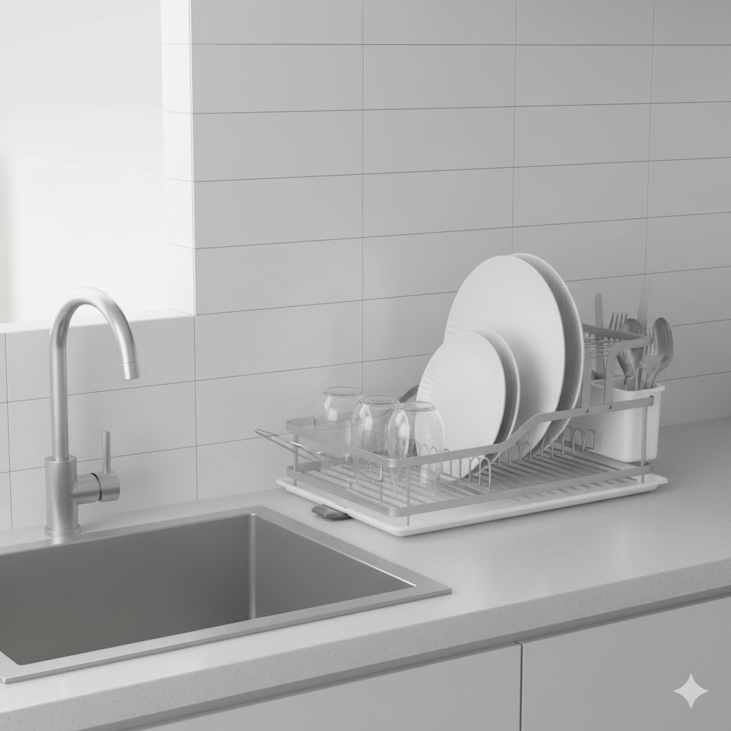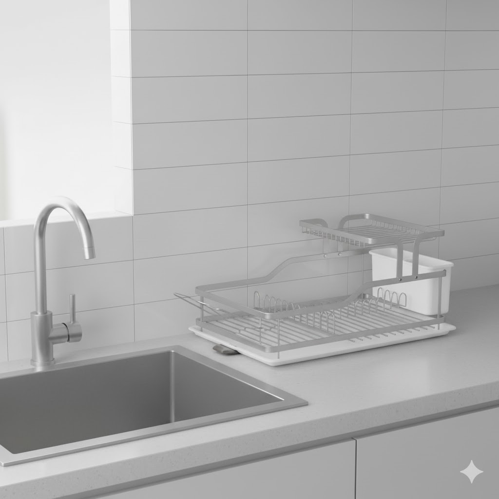 جا ظرفی یک نیم طبقه آلومینیوم نقره ای نیوهوم 2650 از آلومینیوم و بادوام ساخته شده. این جا ظرفی داری جای لیوان و استکان و فنجان است. این جاظرفی دارای یک جای قاشق وچنگال و کارد میباشد. این محصول دارای یک سینی آبچکان نیز میباشد. این محصول در چهار رنگ متفاوت بژ وبرنز و طلایی میباشد که این سه رنگ با کد 3370 از بقیه متمایز میباشد.