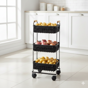 - آشپزخانه: ایدهآل برای نگهداری میوهها و سبزیجات، مواد غذایی خشک (مانند پیاز و سیبزمینی)، بطریهای روغن و سرکه، یا حتی ظروف و لوازم آشپزی کوچک.