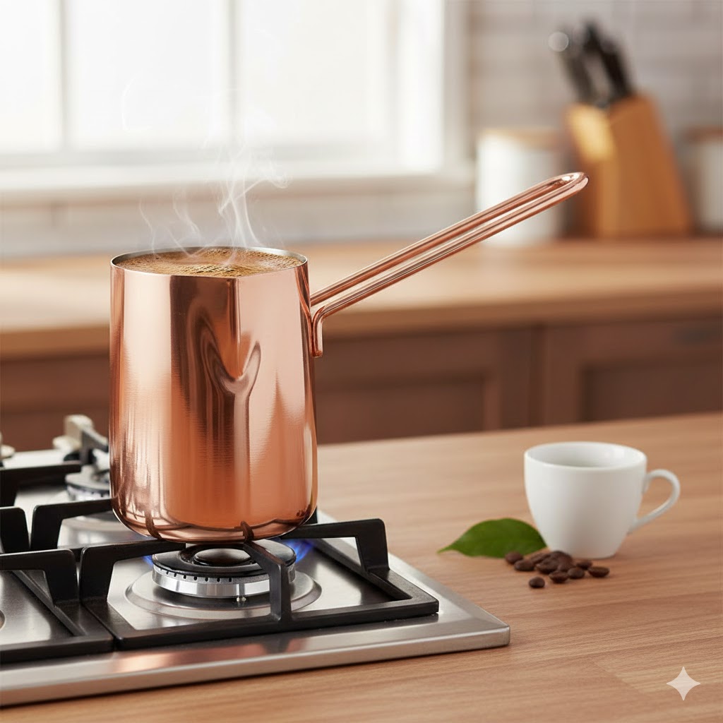 جذوه قهوه استیل طرح مس متوسط یکی از ملزومات قهوه و کافی شاپی می باشد، این محصول مناسب برای گرم کردن شیر و همچنین ریختن شیر و کف شیر بر روی قهوه داغ ، و تهیه یک کافه لاته خاص می باشد. جذوه ها یکی از وسائل کاربردی هر باریستا می باشد، با جذوه شما میتوانید آرت های زیبایی روی قهوه خود بکشید، جذوه ها معمولا از جنس های استیل در گنجایش های مختلف طراحی و تولید می شوند، از جمله ویژگی های دیگر جذوه و شیرجوش :