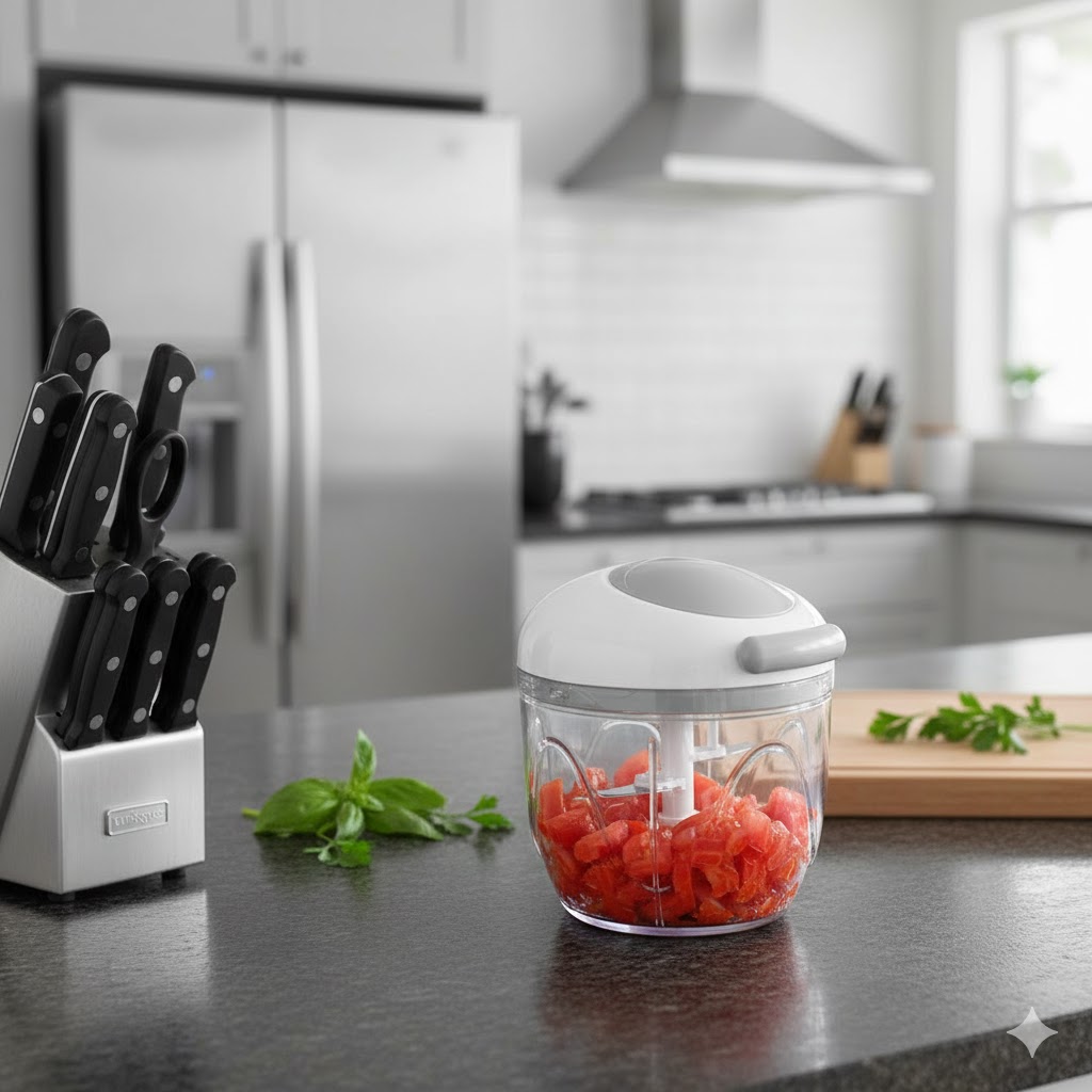 آمادهسازی مواد اولیه، وقتگیرترین بخش آشپزی است. خردکن دستی یونیک مدل UN-3091 با هدف حذف چاقوهای تیز و خطرناک و جایگزینی دستگاههای برقی پرصدا طراحی شده است. این محصول با ابعادی بهینه و مکانیزم پیشرفته، به شما اجازه میدهد در کمتر از ۳۰ ثانیه، سختترین مواد غذایی را به ابعاد دلخواه درآورید.خرد کن دستی مدل هلالی1لیتری یونیک un-3091