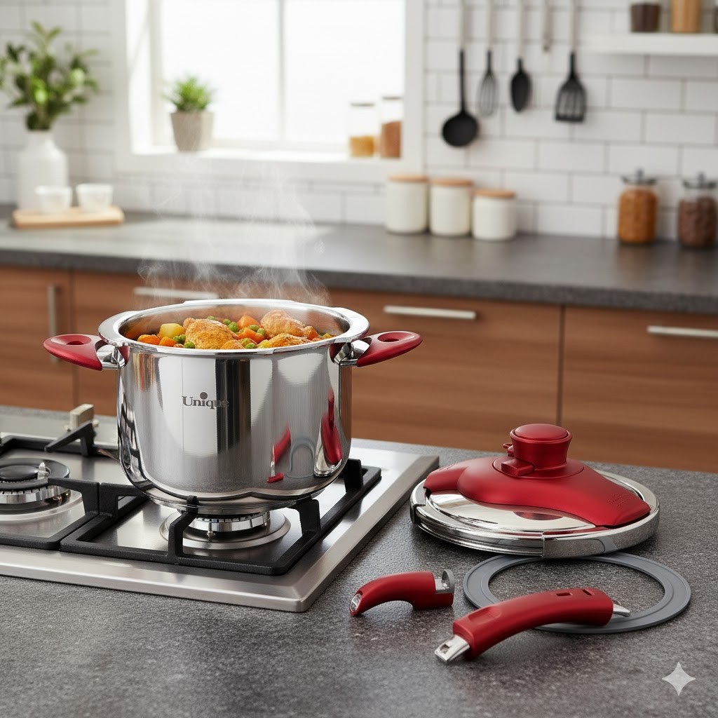 امروزه با توجه به مشغله کاری زیاد افراد و زمانگیر بودن پروسه پخت و پز، استفاده از زود پز ها امری ضروری است. زودپز 6 لیتر استیل یونیک ترکیه 8920 با بدنه ای از استیل براق و بسیار زیباست. این زودپز با ظاهری بسیار شیک و کیفیتی بالا می تواند یکی از اصلی ترین ابزارهای یک آشپزخانه مجهز باشد. کفی این زودپز از چند لایه می باشد و گرما را در کلیه سطح زودپز به طور یکسان پخش می نماید.