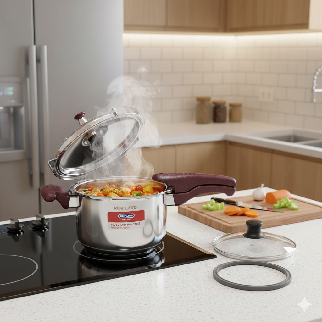زودپز 7 لیتر تک دسته نیولند کد 2134 ، زودپزی با کیفیت در حجم پایین برای خانواده های 6 الی 7 نفره استفاده میشود، این محصول طراحی بسیار سادهای دارد و بهراحتی تنها با حرکت یک دست، درپوش آن باز و بسته میشود. طراحی درپوش به شکلی است که راه خروج بخار را مسدود میکند و کمک میکند غذا در کمترین زمان ممکن آماده شود. برای باز و بستهکردن درپوش کافی است آن را به طرفین بچرخانید. در حین پخت، بخار حاصل از آب هم از طریق سوپاپ تعبیهشده روی درپوش خارج خواهد شد. این محصول جنسی از استیل و دستههایی از باکالیت دارد. همچنین به دلیل داشتن درب پیرکس میتوانید از این محصول برای بخارپز هم استفاده کنید.