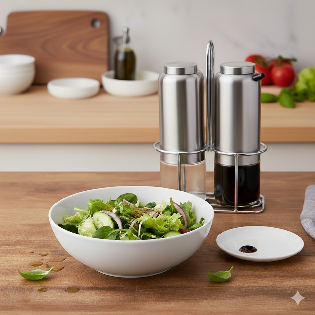 “ست آبلیمو و روغن یونیک 1419″ شامل دو ظرف از جنس شیشه و با پوششی استیل به همراه یک پایه دسته دار برای حمل راحت تر این ظروف است. میتوانید جهت نگهداری روغن، سرکه، آبلیمو و دیگر مایعات از این ظروف زیبا استفاده کنید. شکل خروجی این ظروف باعث جلوگیری از ریختن بیش از حد مایعات به غذا شده و استفاده از آن ها را راحت تر کرده.