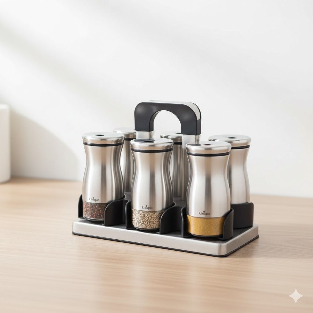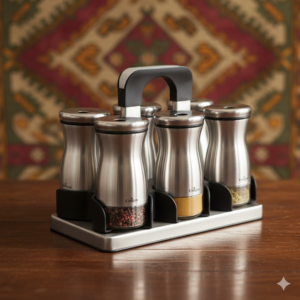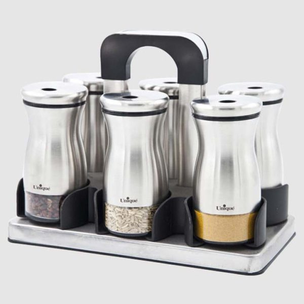 ست ادویه 7 پارچه پایه استیل یونیک کد 2037 (خارجی درجه1)