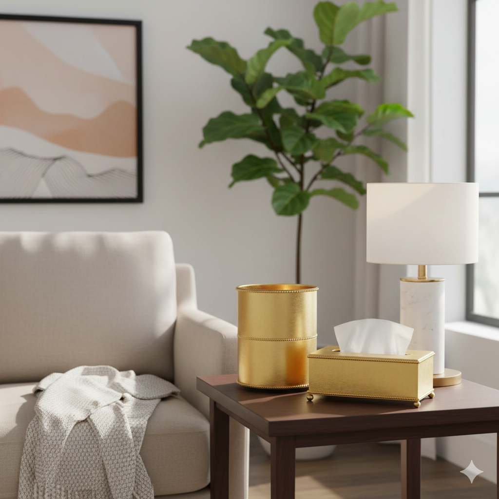 ست سطل و جا دستمالی طلایی یونیک کد 4244