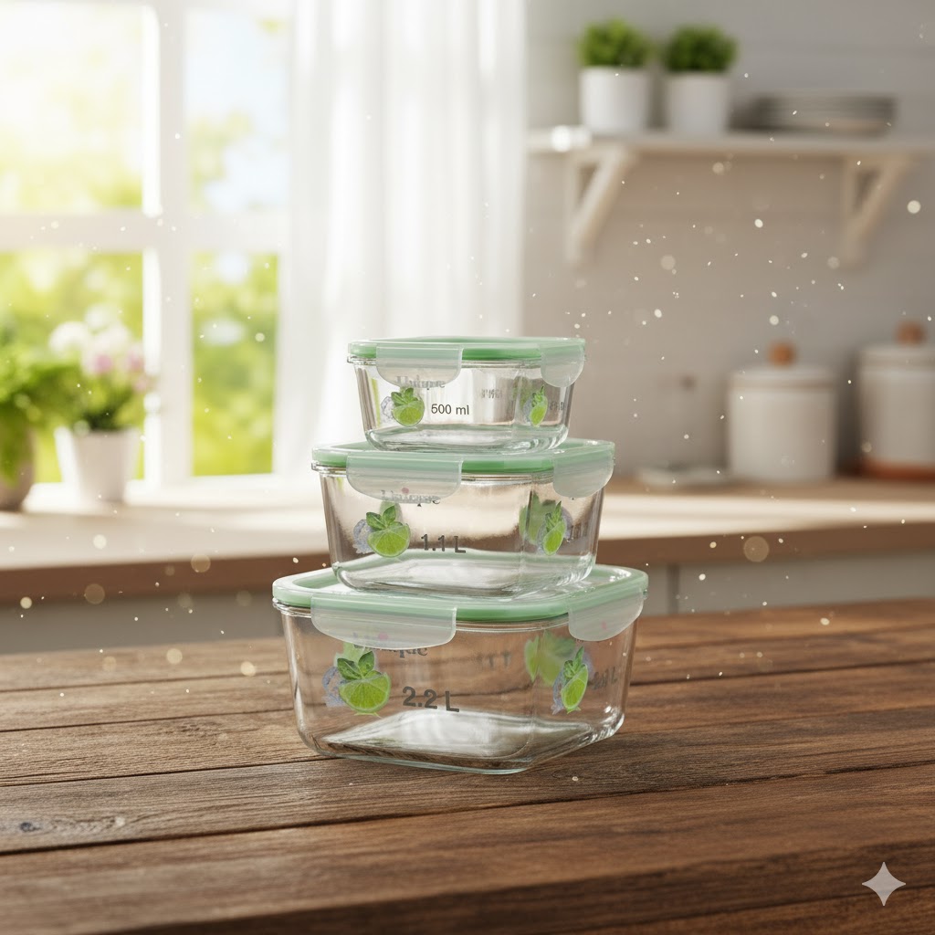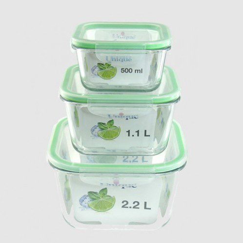 ست ظروف غذا فریزری شیشه ای سه سایز یونیک کد 2813 (خارجی دریجه 1)