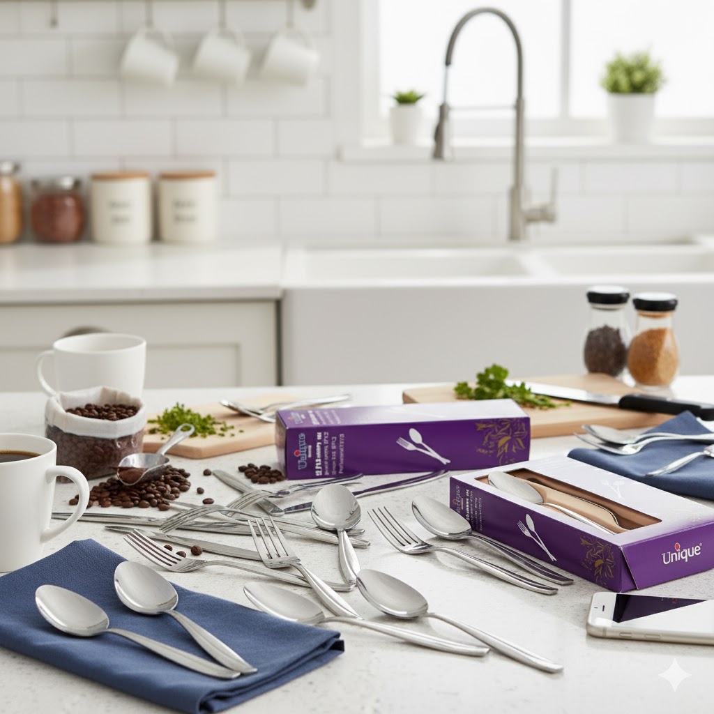 قاشق چنگال 12 پارچه استیل یونیک کد 6384