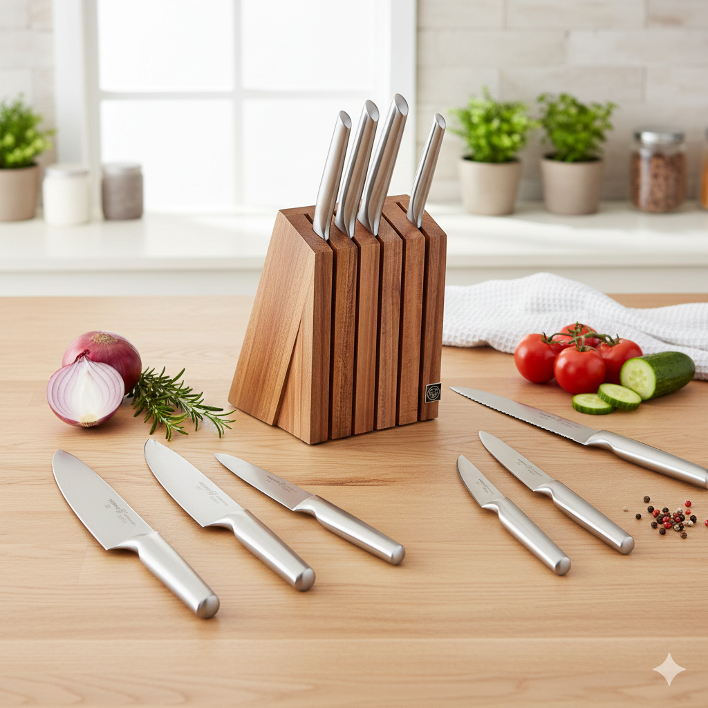تیزی ماندگار: استفاده از تکنیک برش با دقت بالا (اغلب برش لیزری) باعث میشود تیزی چاقوها برای مدت طولانیتری حفظ شود.