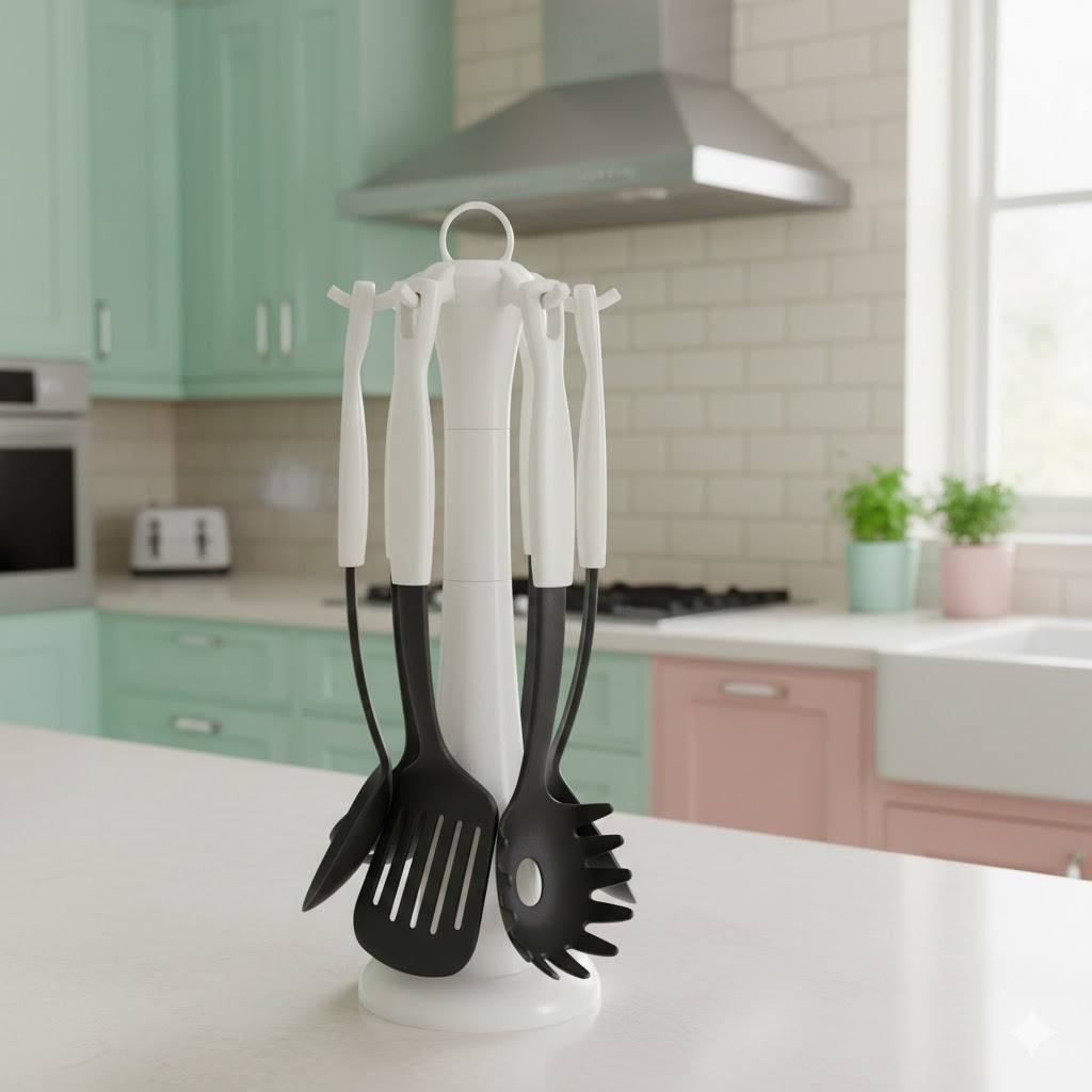 لازمه ی داشتن آشپزخانه ای زیبا و کاربردی انتخاب هوشمندانه وسایل است. هر یک از ابزار های “ست کفگیر و ملاقه تفلن یونیک کد 1049″ در کنار کاربرد های گسترده در آشپزی روزانه، زیبایی فوق العاده ای دارند. این محصولات از جنس سیلیکون هستند. سیلیکون به دلیل تحمل دمای بالا در برابر حرارت ظروف آشپزی مقاوم است. همچنین دسته آن ها از پلاستیک درجه یک ساخته شده.تنوع این ست ابزار باعث شده بتوانید تمام نیاز های آشپزی خود را تامین کنید.ان محصول دارای رنگ های سبز، قرمز، سبز، سفید است. این ست 7 پارچه شامل 6 عدد ابزار آشپزی زیر است: