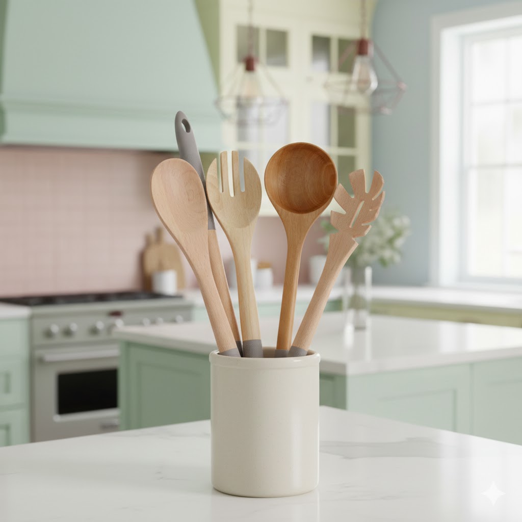 لازمه ی داشتن آشپزخانه ای زیبا و کاربردی انتخاب هوشمندانه وسایل است. هر یک از ابزار های “ست کفگیر و ملاقه چوبی یونیک کد3359” در کنار کاربرد های گسترده در آشپزی روزانه، زیبایی فوق العاده ای دارند. این محصولات از جنس چوب بامبو هستند. تنوع این ست ابزار باعث شده بتوانید تمام نیاز های آشپزی خود را تامین کنید. این ست زیبا شامل موارد زیر است: