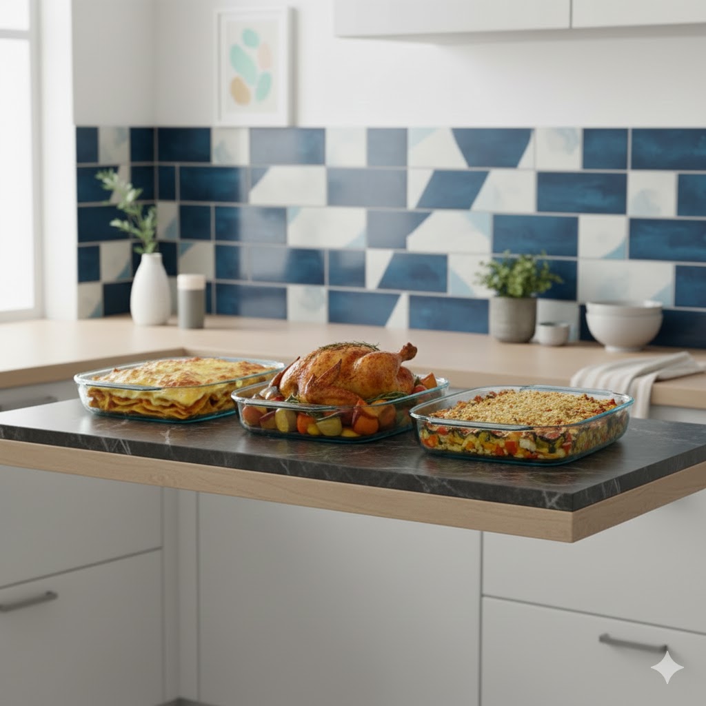 برای خوردن یک غذای عالی در ظرف پیرکس که از لوازم آشپزخانه محسوب می شود می توانید از برچسب Pyrex® IRRESISTIBLE استفاده کنید. با این نوع ظروف پیرکس می توانید مرغ سرخ شده ، گریتین ، پای گوسفند و … را پخته و در کنار خانواده خود میل کنید. ظروف شیشه ای بوروسیلیکات عمیق ، به لطف دسته های بزرگ و یکپارچه آنها ، بسیار مقاوم و کاربردی هستند. در نتیجه می توان با این نوع ظروف از خوردن یک غذای ارگونومیک لذت برد.