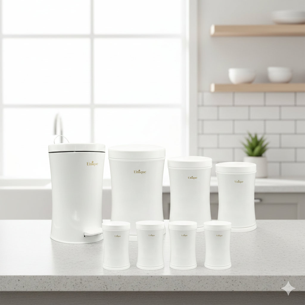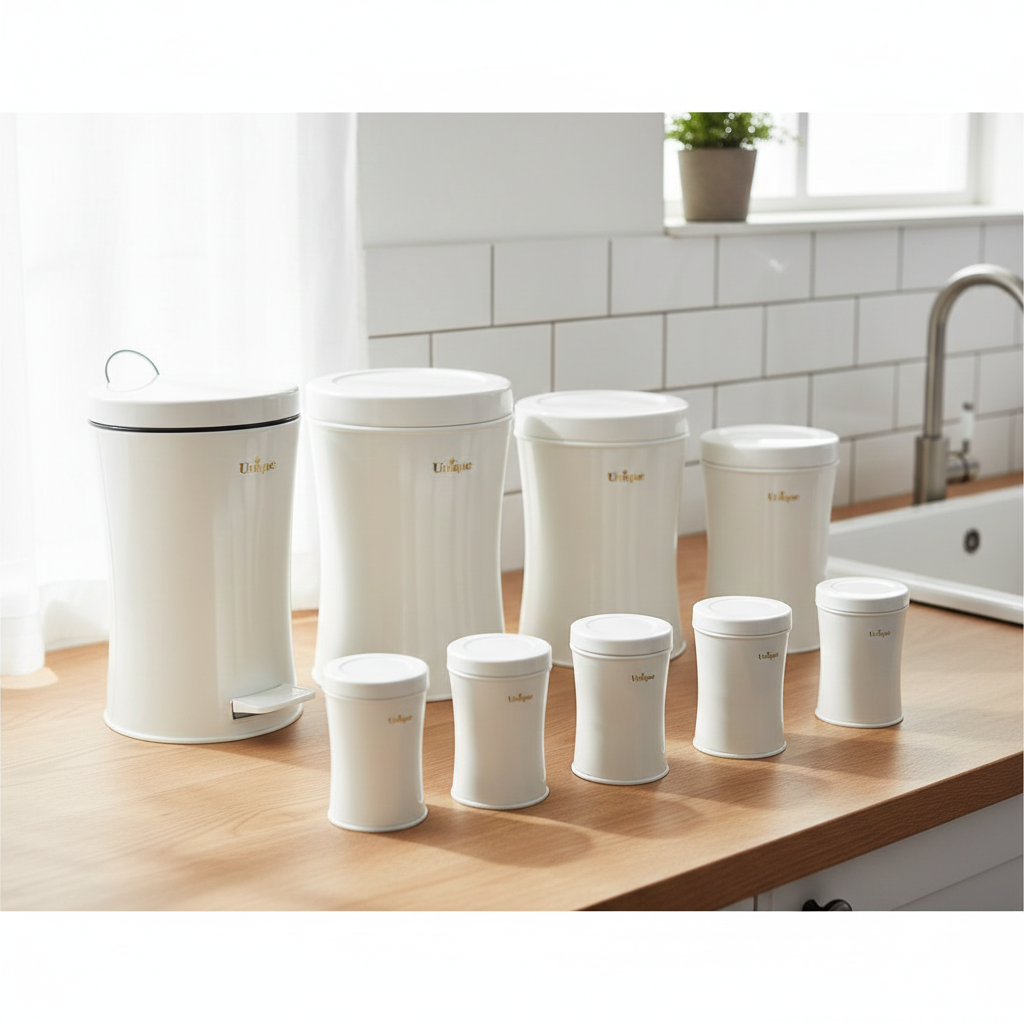 سرویس آشپزخانه 8 پارچه عروس سفید یونیک کد 4510 شامل مواد زیر است:
