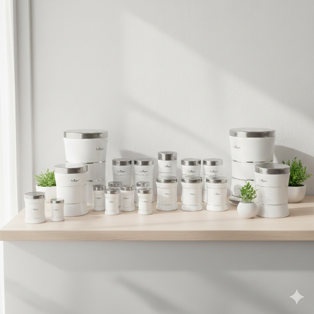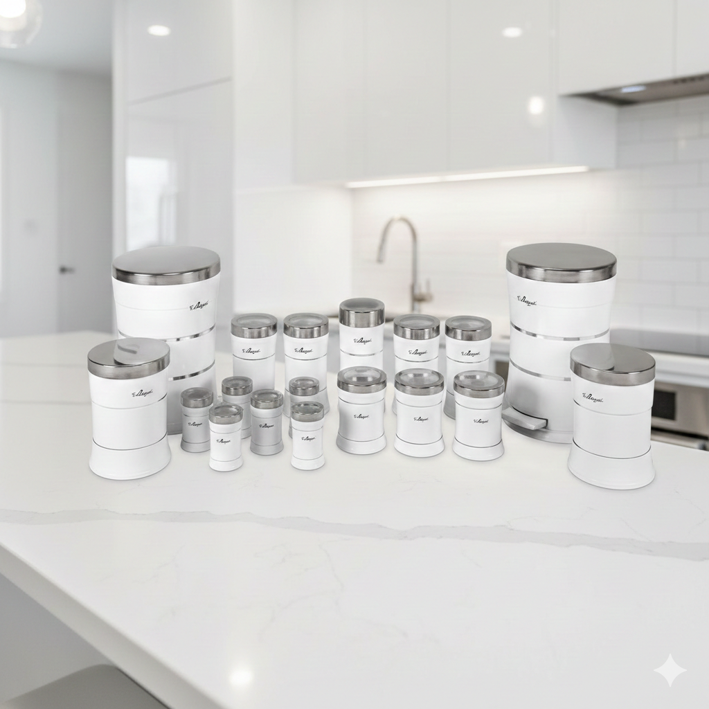 هر قطعه از این سرویس با دقت و با استفاده از بهترین مواد ساخته شده است، تا تجربه استفادهی شما از آشپزخانه را به یک سطح جدید از لذت و راحتی برساند. طراحی خطوط باریک و سفید روی استیل این سرویس، آن را از دیگر محصولات مشابه متمایز میکند و به آشپزخانهی شما زیبایی و شکوه میبخشد.