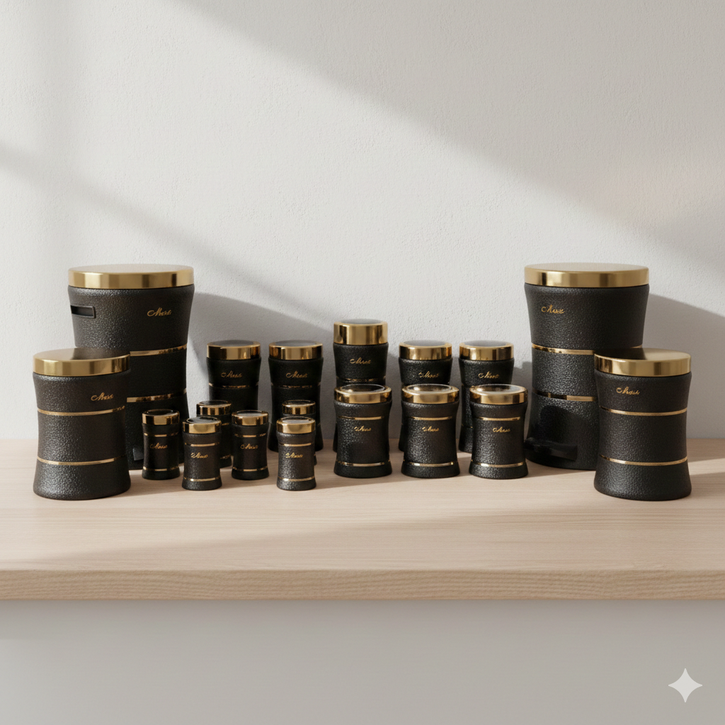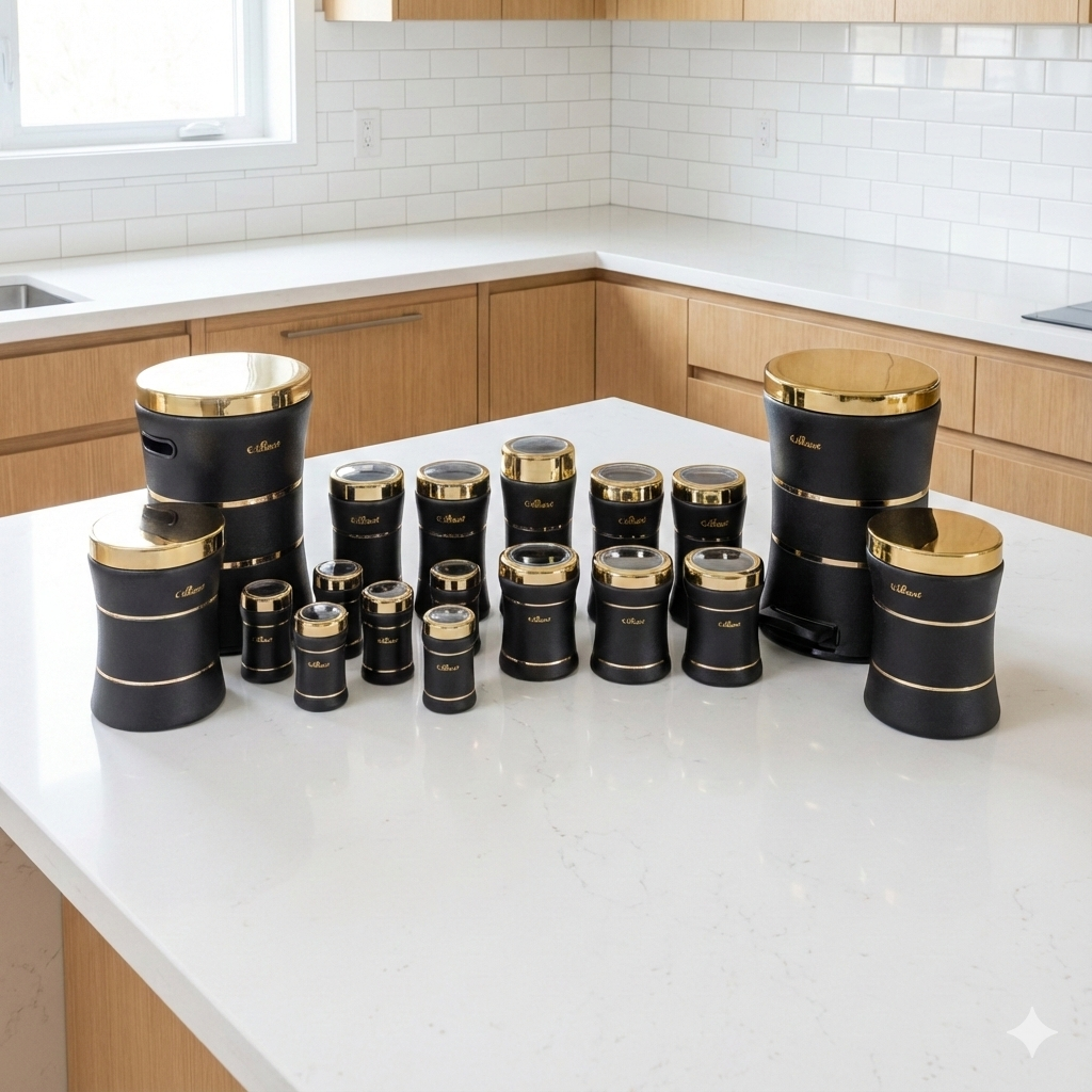 سرویس اشپزخانه 18 کمر باریک خطی مشکی مات طلایی یونیک کد 4697 به شما امکان میدهد تا آشپزخانهی رویایی خود را با کمترین تلاش و به بهترین شکل ممکن داشته باشید. همچنین، میتوانید این سرویس را به راحتی از فروشگاه آنلاین پرنس هوم سفارش داده و بهسرعت درب منزل خود تحویل بگیرید