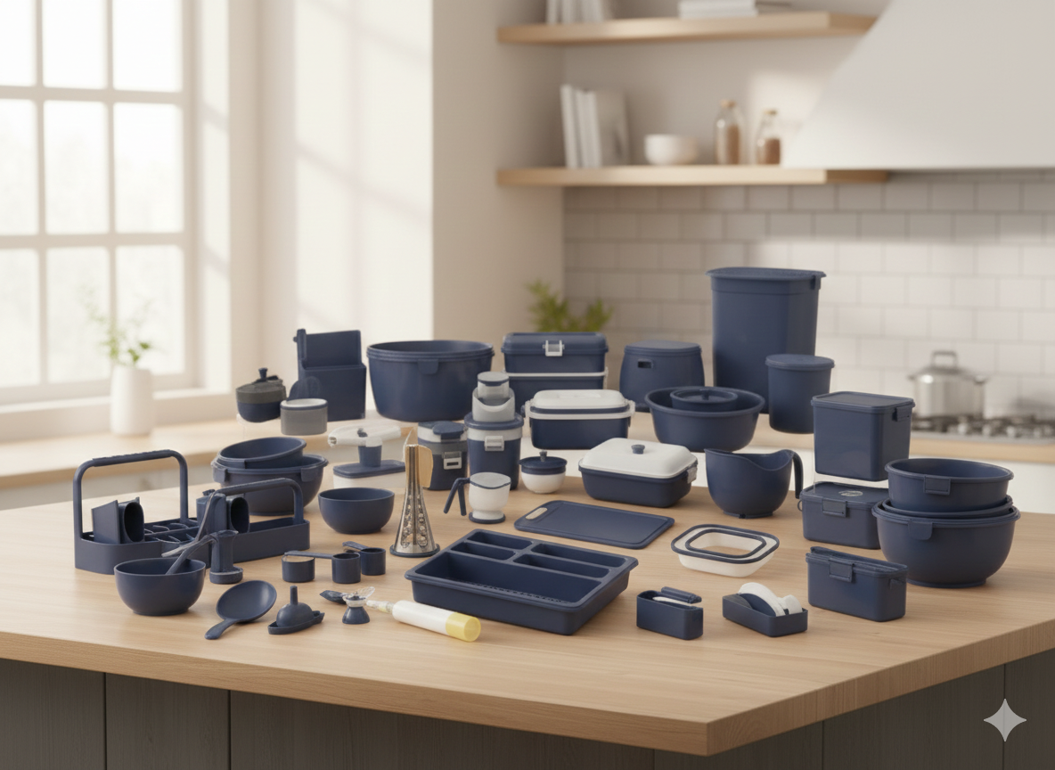 - تنوع بینظیر: شامل سبد رخت، چهارپایه، رنده، جارو و خاکانداز، فرچه، جا مایعی، جا قاشقی، ظروف دربدار نگهدارنده، سبد، گیره لباس، سبد پیکنیک، جارو کوچک، سطل آویزی، قیف، کاسه، لگن، پارچ، آبمیوهگیری دستی، تخته برش، جا قاشق چنگالی، جارو رو فرشی و بسیاری موارد دیگر.