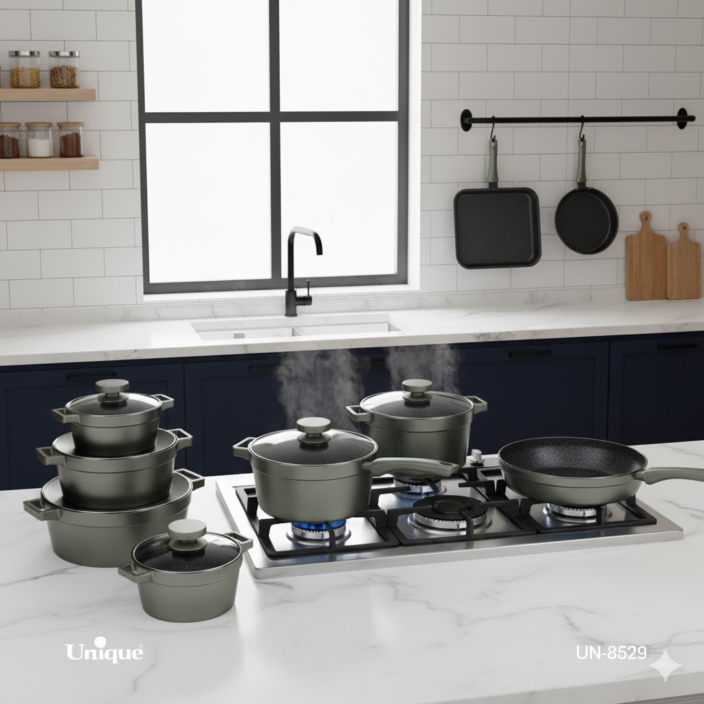 به طور خلاصه، این مجموعه ظروف آشپزخانه “Unique” با طراحی کاربردی، پوشش نچسب، دربهای شیشهای شفاف، و ظاهر مدرن، میتواند انتخابی مناسب برای آشپزخانههای امروزی باشد که هم به کارایی و هم به زیبایی اهمیت میدهند. این ست، طیف وسیعی از نیازهای پخت و پز روزمره را پوشش میدهد.