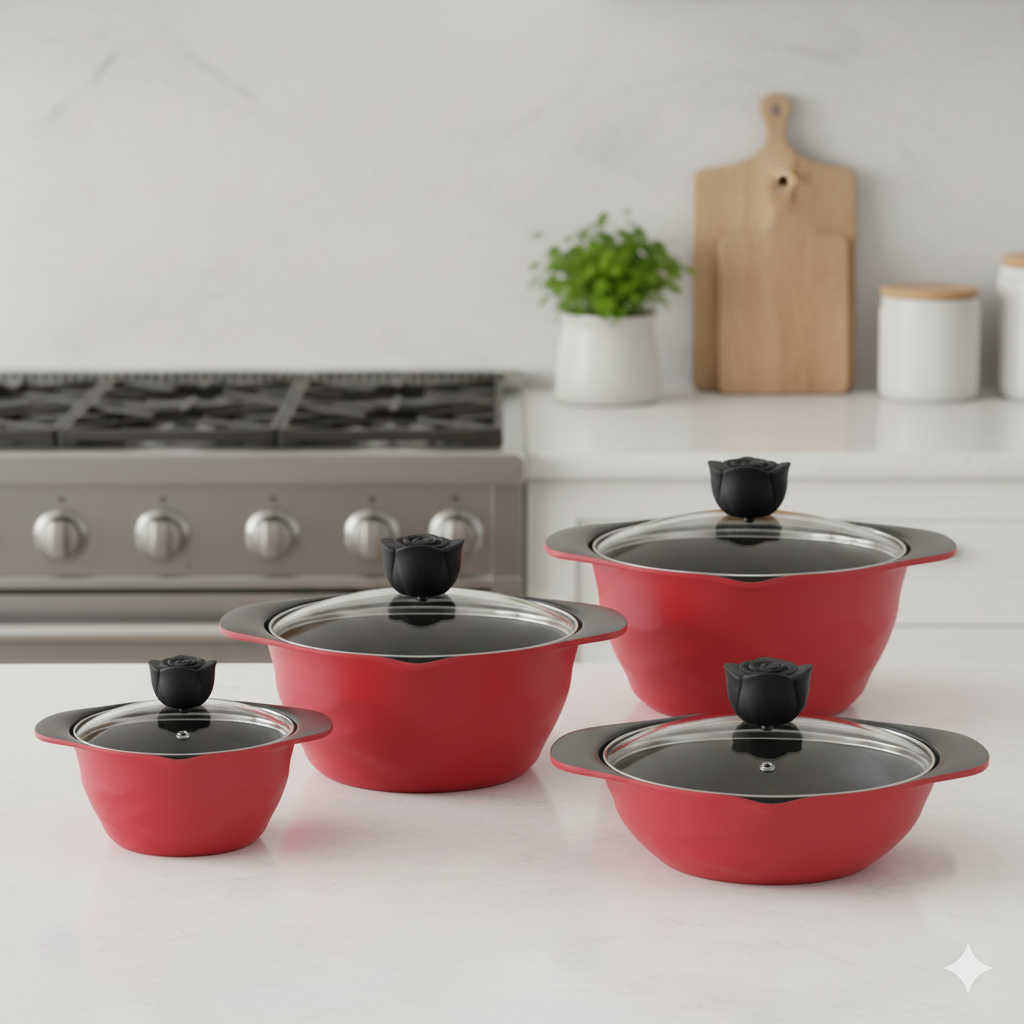 - 4 عدد درب پیرکس دور استیل با دسته ی باکالیت نسوز به شکل گل