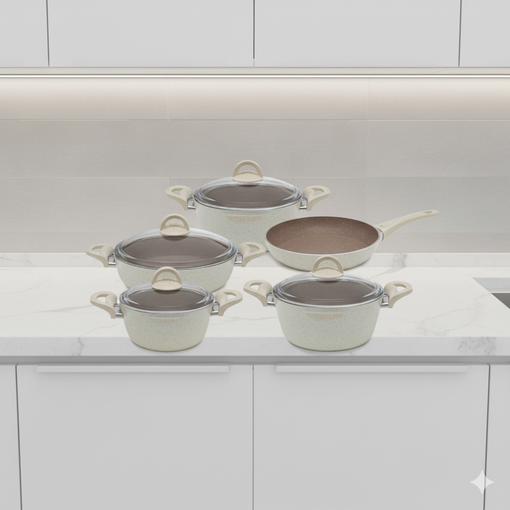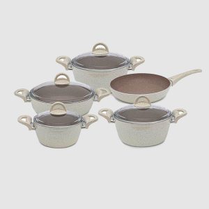 داخل این ظروف با روکشی گرانیتی پوشیده شده. این روکش علاوه بر نجسب بودن، نسبت به تفلون سالم تر و بادوام تر است. لطفا در هنگام آشپزی از کشیدن قاشق فلزی به داخل ظروف روکش دار خودداری کنید. استفاده از قاشق های چوبی یا سیلیکونی طول عمر ظروف را افزایش میدهد.