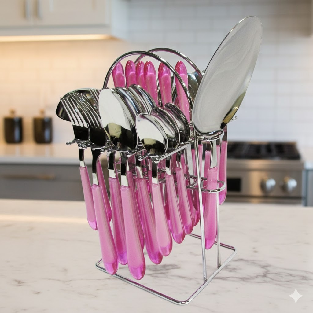 “سرویس قاشق و چنگال 33 پارچه دسته قلبی یونیک کد 5840” ساخته شده از استیل ضد زنگ ضخیم و پوشیده شده از دسته های پلاستیکی زیباست. این دسته ها قابلیت شستشو در ماشین ظرف شویی را دارند و تار و خراب نخواهند شد. البته توصیه میشود از شستن کارد ها در ماشین ظرف شویی خودداری شود.