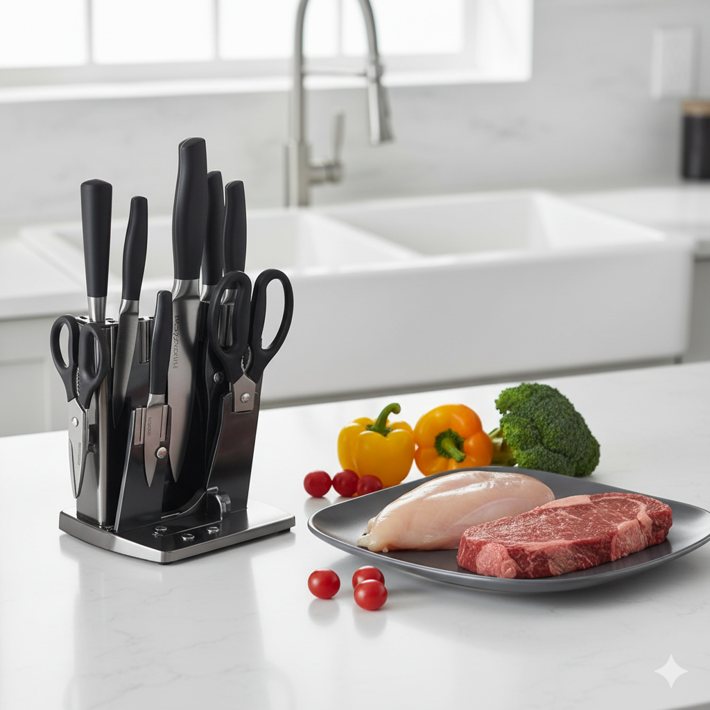سرویس کارد و ساطور 8 پارچه کالسکه یونیک کد 5548 (خارجی درجه یک)