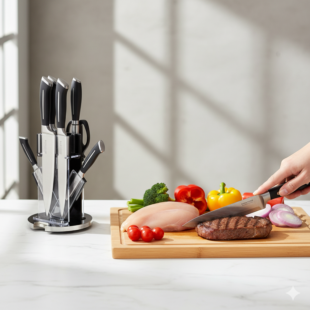 سرویس کارد و ساطور 8 پارچه گردان یونیک کد 5544 (آی)