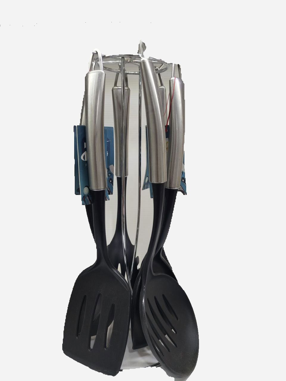 پایه نگهدارنده چرخان، نقطه قوت کلیدی این ست است. دیگر نیازی نیست برای پیدا کردن کفگیر مورد نظرتان، کشوهای شلوغ را زیر و رو کنید! این پایه، امکان دسترسی سریع و آسان به هر یک از ابزارها را فراهم میکند. هر ابزار در جای مخصوص خود آویزان میشود و نمایشی مرتب و سازمانیافته را ارائه میدهد. این ویژگی نه تنها در زمان شما صرفهجویی میکند، بلکه به نظم و آراستگی آشپزخانه شما نیز کمک شایانی میکند.