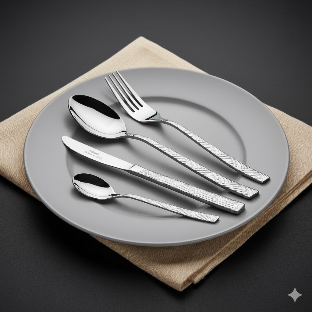 انتخاب قاشق و چنگال غذا خوری تکمیل کننده یک سفره زیبا است. تنوع رنگ و طرح بسیار زیاد قاشق و چنگال ها دست شما را برای انتخاب یک ست مناسب برای میز غذای شما باز میگذارد.جدای از ظاهر زیبای قاشق و چنگال از مهمترین ویژگی های لازم که باید به آنها توجه کرد، جنس و استحکام فلز به کار رفته در قاشق و چنگال است. اگر از جنس مرغوبی در تهیه آن استفاده نشده باشد ممکن است هنگام استفاده خم شود یا به دلیل سنگینی بیش از حد دست شما و مهمانان عزیزتان خسته شود. بهترین جنس برای تولید یک قاشق یا چنگال استیل ضد زنگ 10/80 ایت. این فلز در برابر زنگ زدگی کاملا محفوظ است و تا سالهای سال سالم جزوی از وسایل غذا خوری شما باقی می ماند.