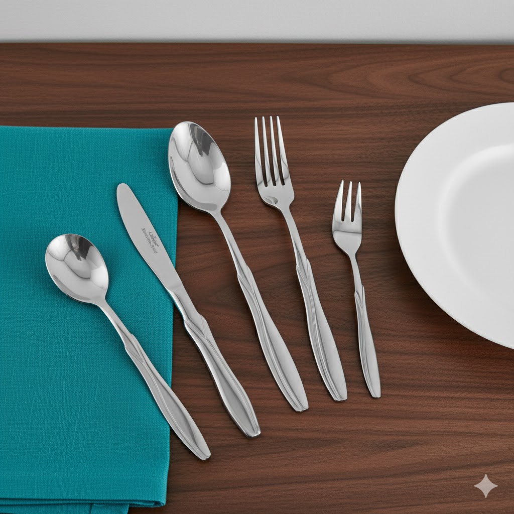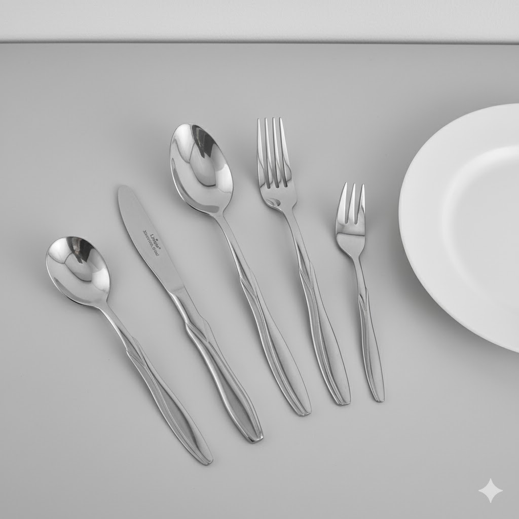انتخاب قاشق و چنگال غذا خوری تکمیل کننده یک سفره زیبا است. تنوع رنگ و طرح بسیار زیاد قاشق و چنگال ها دست شما را برای انتخاب یک ست مناسب برای میز غذای شما باز میگذارد.جدای از ظاهر زیبای قاشق و چنگال از مهمترین ویژگی های لازم که باید به آنها توجه کرد، جنس و استحکام فلز به کار رفته در قاشق و چنگال است. اگر از جنس مرغوبی در تهیه آن استفاده نشده باشد ممکن است هنگام استفاده خم شود یا به دلیل سنگینی بیش از حد دست شما و مهمانان عزیزتان خسته شود. بهترین جنس برای تولید یک قاشق یا چنگال استیل ضد زنگ 10/80 ایت. این فلز در برابر زنگ زدگی کاملا محفوظ است و تا سالهای سال سالم جزوی از وسایل غذا خوری شما باقی می ماند.