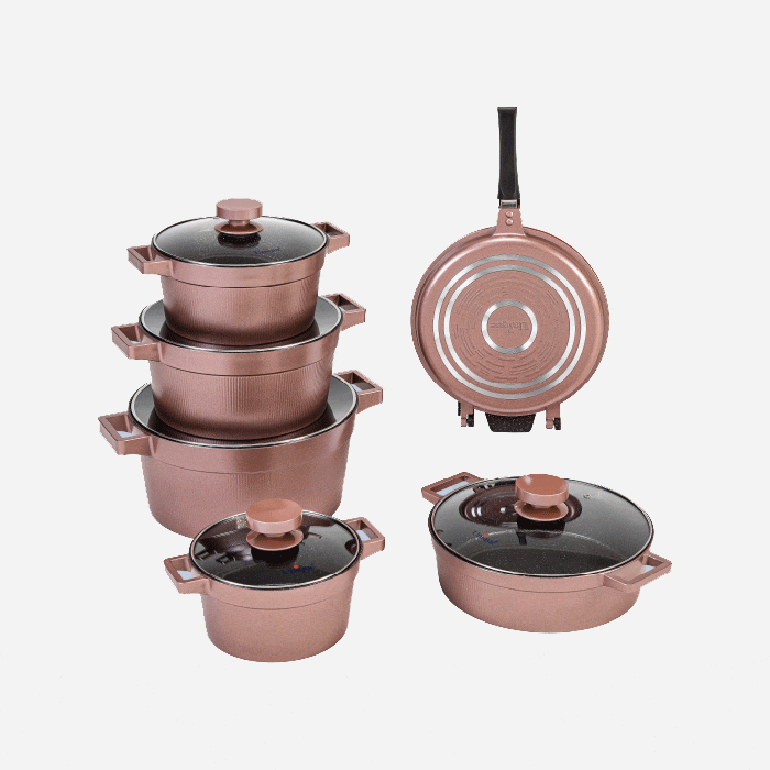 سرویس 12 پارچه رزگلد دیاموند یونیک ، با استفاده از بهترین مواد و با استفاده از طراحی بینظیر و جدید، شکوه و زیبایی را به آشپزخانهی شما میآورد. رنگ مشکی جذاب و شیک این سرویس، به آشپزخانهی شما یک نگاه متفاوت و جذاب میبخشد و از همه مهمتر، هماهنگی بین قطعات این سرویس، آن را به یک انتخاب بینظیر برای هر آشپزخانهای تبدیل میکند.