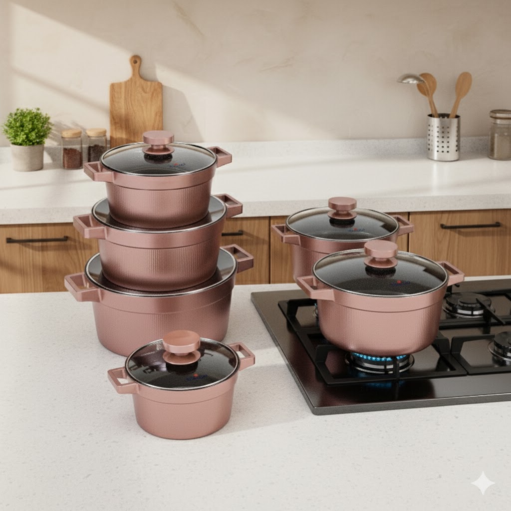 سرویس 12 پارچه رزگلد دیاموند یونیک کد 8515، جواهری آشپزخانهی شماست که با زیبایی و کیفیت بالای خود، آن را به یک فضای لوکس و شکوهمند تبدیل میکند. هر قطعه از این سرویس، همانند یک الماس بازار، با براقیت و شکوهی خاص برخوردار است که شما را به دنیایی از زیبایی و لذت میبرد.