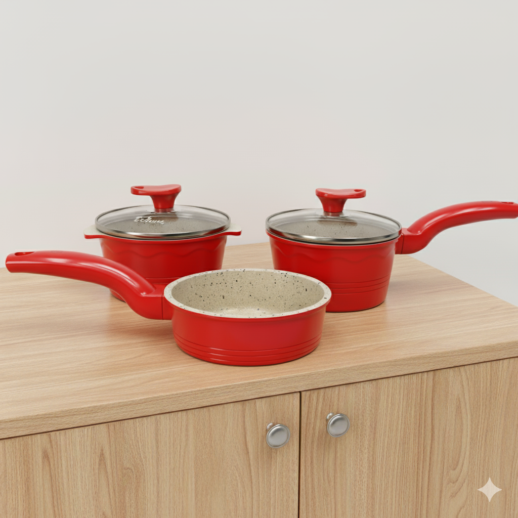 سرویس 5 پارچه نوزادی یونیک 876 شامل 3 ظرف پخت و پز بسیار با کیفیت سرامیکی است. این ظرف ها در ابعاد کوچک و رنگ های زیبا تولید شده اند. با توجه به پوشش نچسب با کیفیت، گزینه مناسب و ایمنی از نظر سلامتی برای کودکان هستند. این سرویس شامل یک شیر جوش، یک قابلمه و یک تابه است.