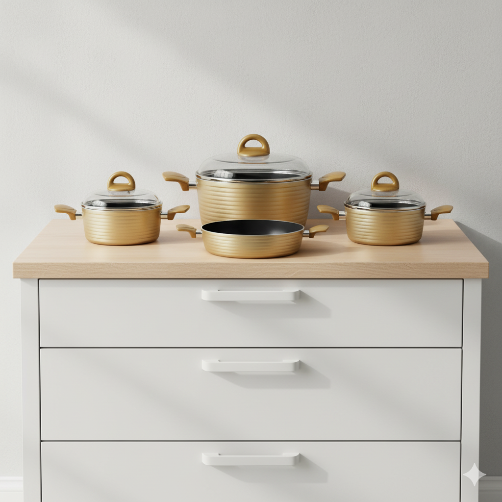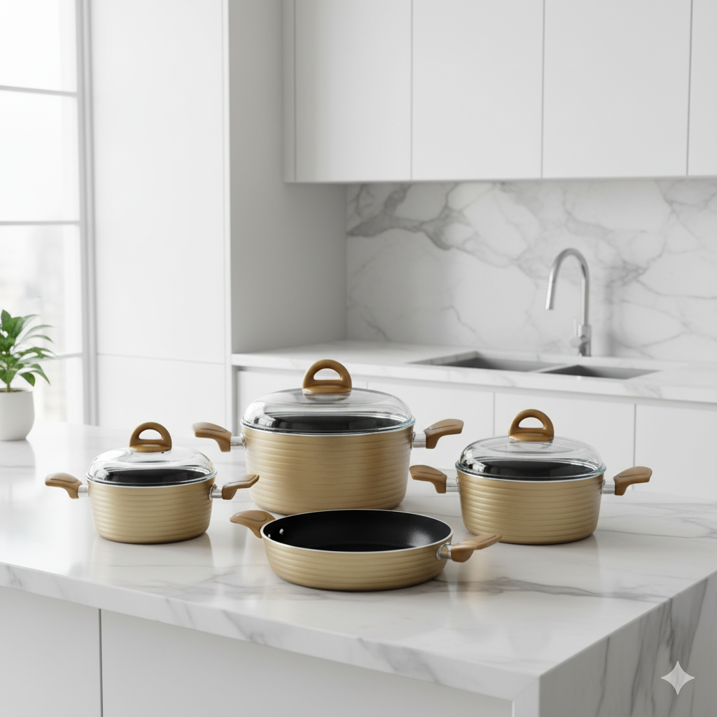 شامل 3 قابلمه و یک تابه به همراه 3 درب