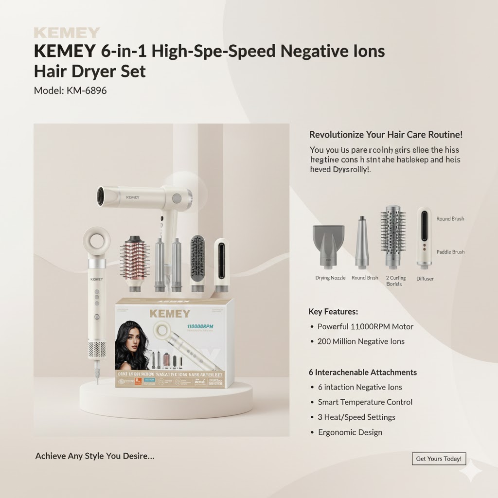 سشوار حرفه ای 6 کاره ای کیمی KEMEI KM-6896: انقلابی در دنیای حالتدهی مو!