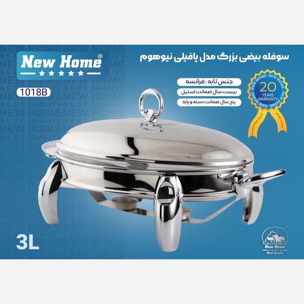 سوفله بیضی بزرگ پافیلی نیوهوم کد 1018B، محصولی بیضی شکل با کیفیت از استیل استنلیس خارجی 18/10 می باشد، که طرف داخلی از ظروف پیرکس نشکن ضد شوک میباشد. این محصول دارای دو شمع وارمر است که برای گرم نگه داشتن غذای شما در میز غذا خوری کاربردی است. دسته های این محصول حلقه ای است. این محصول مناسب برای سرو کباب، جوجه در میز پذیرایی مناسب است.