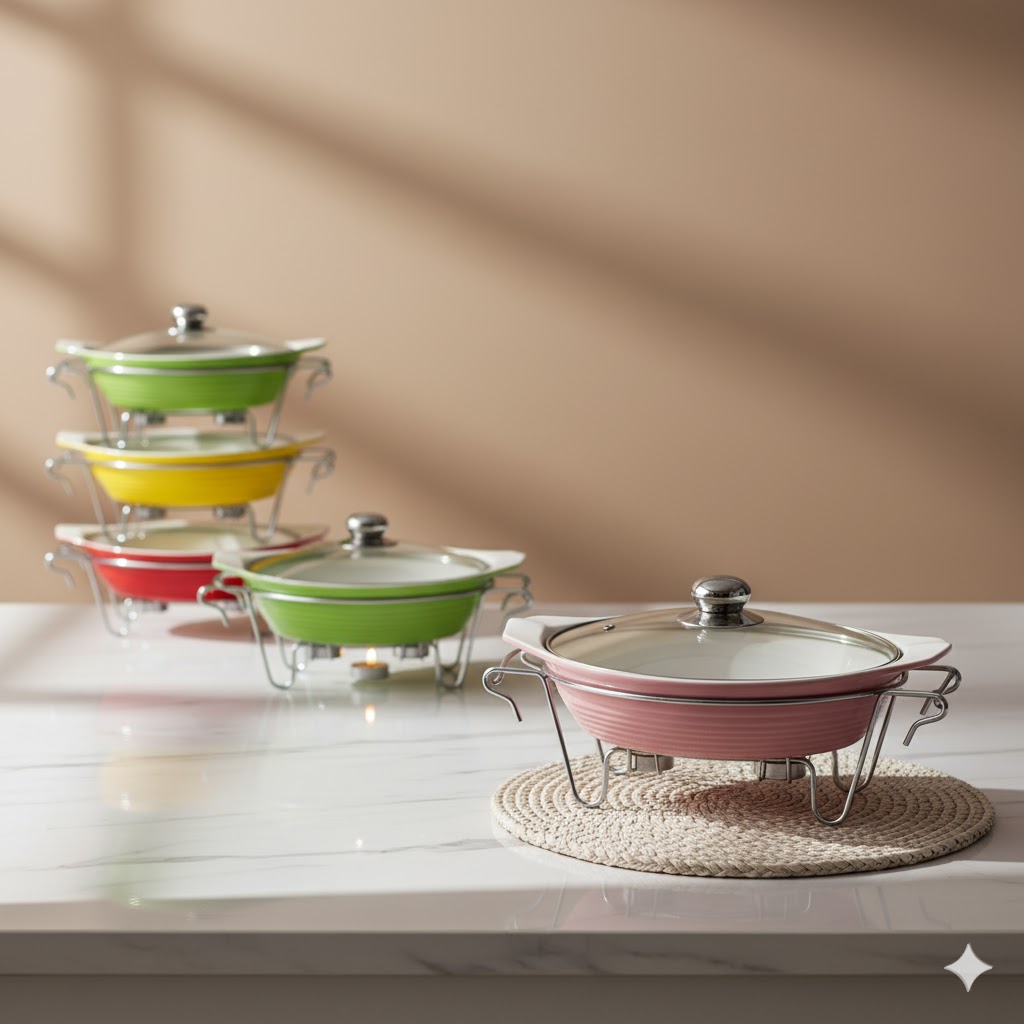 ظروف سوفله خوری در ابتدا برای سرو نوعی کیک به نام سوفله استفاده می شد. این نوع کیک نیاز داشت تا در هنگام سرو گرم باشد تا بتواند پف خود را حفظ کند. به همین دلیل امروزه به ظروفی که دارای وارمر (جای شمع) در زیر غذا هستند سوفله خوری می گویند. این ظروف مناسافزودن جدیدب برای سرو انواع سوپ، آش، خوراک هایی از قبیل کباب، جوجه، مرغ و ماهی هستند. به خصوص در مهمانی هایی که نیاز دارید مدتی قبل از حضور مهمانان در سر میز ظرف ها و غذا ها به طور کامل چیده شوند؛ این وقفه میتواند باعث سرد شدن و به اصطلاح از دهن افتادن غذای شما شود. با وجود جای مخصوص شمع در زیر سوفله خوری و قرار دادن یک شمع کوچک در زیر غذا خیالتان از بابت گرم ماندن غذا راحت است. ظروف سوفله خوری بر اساس کاربرد آنها در اشکال و اندازه های گوناگون تولید میشوند. “سوفله خوری چینی متوسط رنگی یونیک کد 8526” ساخته شده از سه قسمت مجزا است. ظرف از جنس چینی در داخل برای قرار دادن غذا. دستگیره درب و وارمر از جنس استیل ضد زنگ درجه یک. و درب شیشه ای. مناسب برای سرو انواع غذا به صورت سرد و گرم. زیر ظرف دو جا شمعی تعبیه شده و گرمای کافی برای گرم نگه داشتن انواع غذا ها را تامین میکند. بدنه شیار دار و دسته های زیبای این محصول ظاهری بسیار زیبا و مناسب مهمانی ها یا استفاده روزمره دارد.