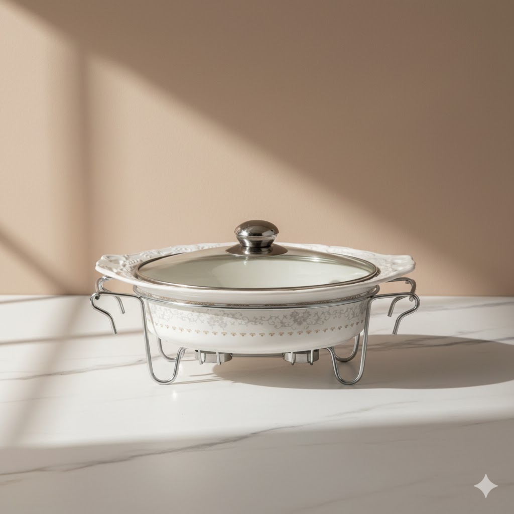 “سوفله خوری چینی متوسط یونیک کد 8555” ساخته شده از سه قسمت مجزا است. ظرف از جنس چینی در داخل برای قرار دادن غذا. دستگیره درب و وارمر از جنس استیل ضد زنگ درجه یک. و درب شیشه ای. مناسب برای سرو انواع غذا به صورت سرد و گرم. زیر این ظرف دو جا شمعی تعبیه شده و گرمای کافی برای گرم نگه داشتن انواع غذا ها را تامین میکند. بدنه شیار دار و دسته های زیبای این محصول ظاهری بسیار زیبا و مناسب مهمانی ها یا استفاده روزمره دارد.