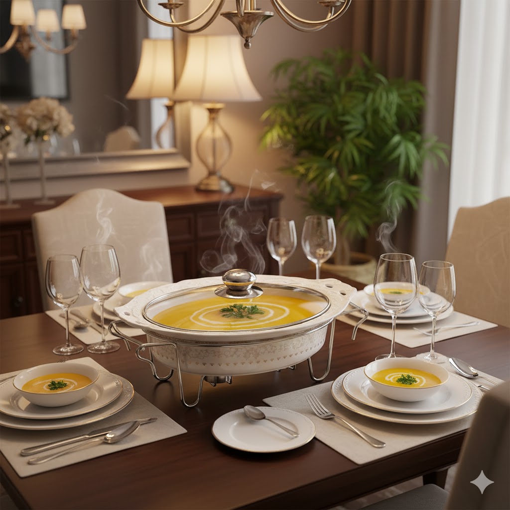 این ظروف مناسب برای سرو انواع سوپ، آش، خوراک هایی از قبیل کباب، جوجه، مرغ و ماهی هستند. به خصوص در مهمانی هایی که نیاز دارید مدتی قبل از حضور مهمانان در سر میز ظرف ها و غذا ها به طور کامل چیده شوند؛ این وقفه میتواند باعث سرد شدن و به اصطلاح از دهن افتادن غذای شما شود. با وجود جای مخصوص شمع در زیر سوفله خوری و قرار دادن یک شمع کوچک در زیر غذا خیالتان از بابت گرم ماندن غذا راحت است. ظروف سوفله خوری بر اساس کاربرد آنها در اشکال و اندازه های گوناگون تولید میشوند.