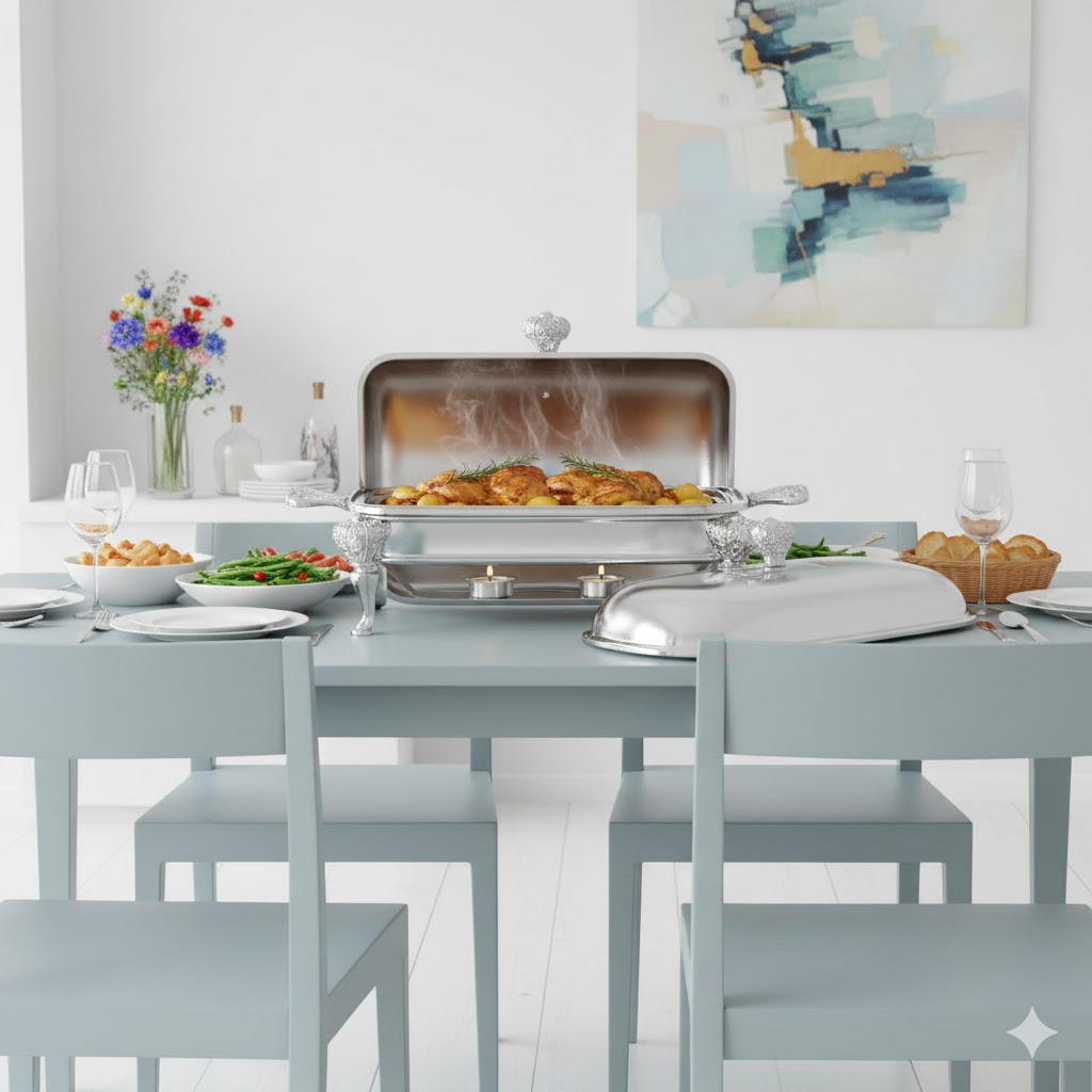 ظروف سوفله خوری در ابتدا برای سرو نوعی کیک به نام سوفله استفاده می شد. این نوع کیک نیاز داشت تا در هنگام سرو گرم باشد تا بتواند پف خود را حفظ کند. به همین دلیل امروزه به ظروفی که دارای وارمر (جای شمع) در زیر غذا هستند سوفله خوری می گویند. ین ظروف مناسب برای سرو انواع سوپ، آش، خوراک هایی از قبیل کباب، جوجه، مرغ و ماهی هستند. به خصوص در مهمانی هایی که نیاز دارید مدتی قبل از حضور مهمانان در سر میز ظرف ها و غذا ها به طور کامل چیده شوند؛ این وقفه مینتواند باعث سرد شدن و به اصطلاح ار دهن افتادن غذای شما شود. با وجود جای مخصوص شمع در زیر سوفله خوری و قراردادن یک شمع کوچک در زیر غذا خیالتان از بابت گرم ماندن غذا راحت است. ظروف سوفله خوری بر اساس کاربرد آنها در اشکال و اندازه های گوناگون تولید میشوند. “سوفله خوری مستطیل 1.5 لیتری امپراطور یونیک کد 3839” ساخته شده از ظرف پیرکس فرانسه داخلی برای قرار دادن غذا و بدنه و درب از جنس استیل ضد زنگ 10-80 درجه یک. مناسب برای سرو انواع غذا به صورت سرد و گرم. زیر این ظرف دو جا شمعی تعبیه شده و گرمای کافی برای گرم نگه داشتن انواع غذا ها را تامین میکند. بدنه براق و دسته های زیبای این محصول ظاهری بسیار لوکس و مناسب جشن ها و تشریفات خاص شما دارد.