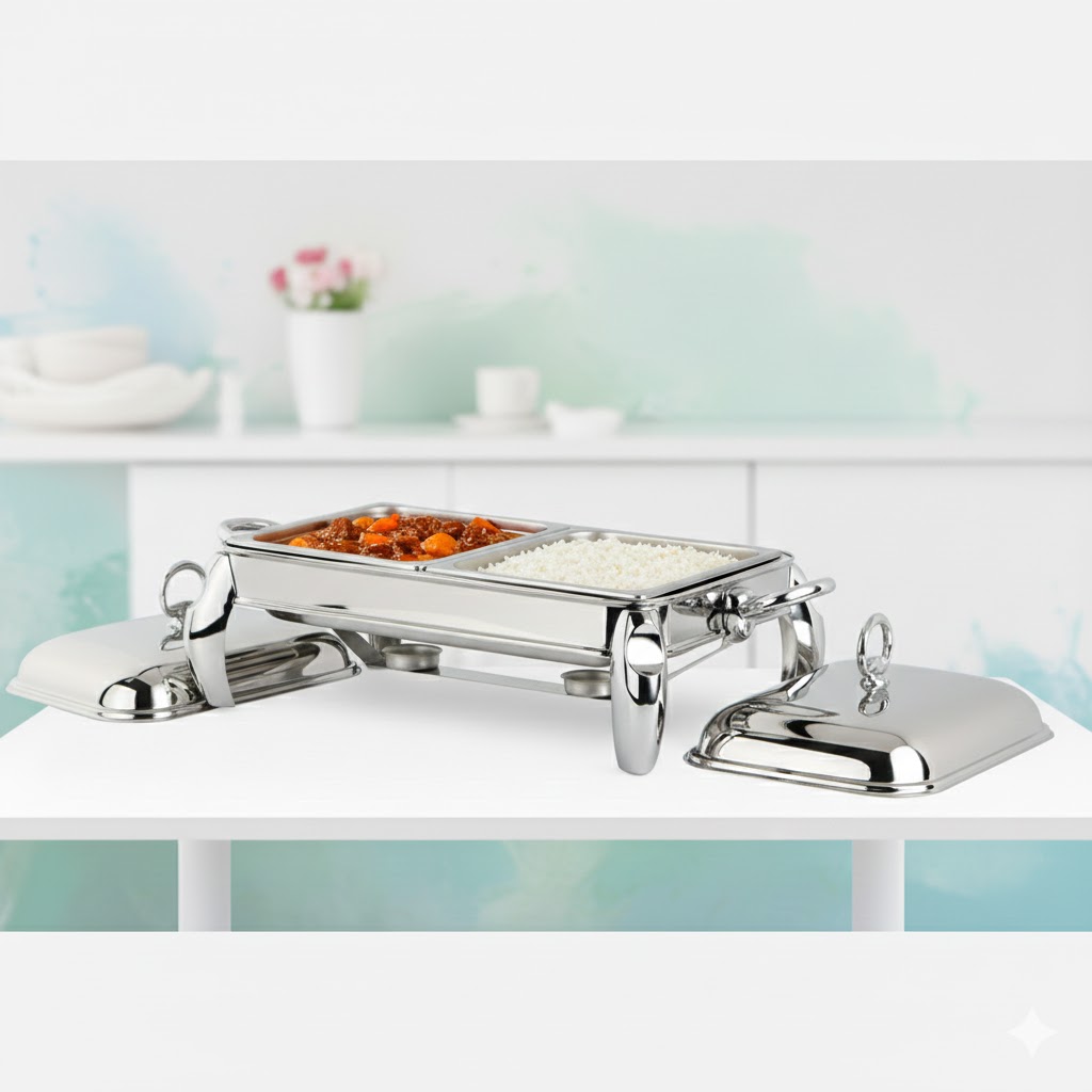 ظروف سوفله از جمله ظروف پر کاربردی برای مهمانی های مجلل است،سوفله های برند نیوهوم، از جمله محصولات با کیفیت از جنس استیل و ظرف داخلی پیرکس خارجی میباشد، این محصول دارای وارمر زیر ظرف است که باعث گرم نگه داشتن محتویات ظرف و غذا میشود، و باعث میشود طعم مواد غذایی حفظ گردد.
