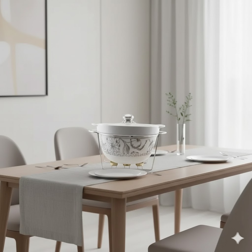 “سوفله سوپ خوری بزرگ یونیک کد 8561” ساخته شده از دو قسمت مجزا است. ظرف پیرکس فرانسه داخلی برای قرار دادن غذا و بدنه و درب از جنس چینی 10-80 درجه یک. مناسب برای سرو انواع غذا به صورت سرد و گرم. زیر این ظرف دو جا شمعی تعبیه شده و گرمای کافی برای گرم نگه داشتن انواع غذا ها را تامین میکند.دسته های زیبای این محصول ظاهری بسیار لوکس و مناسب جشن ها و تشریفات خاص شما دارد.